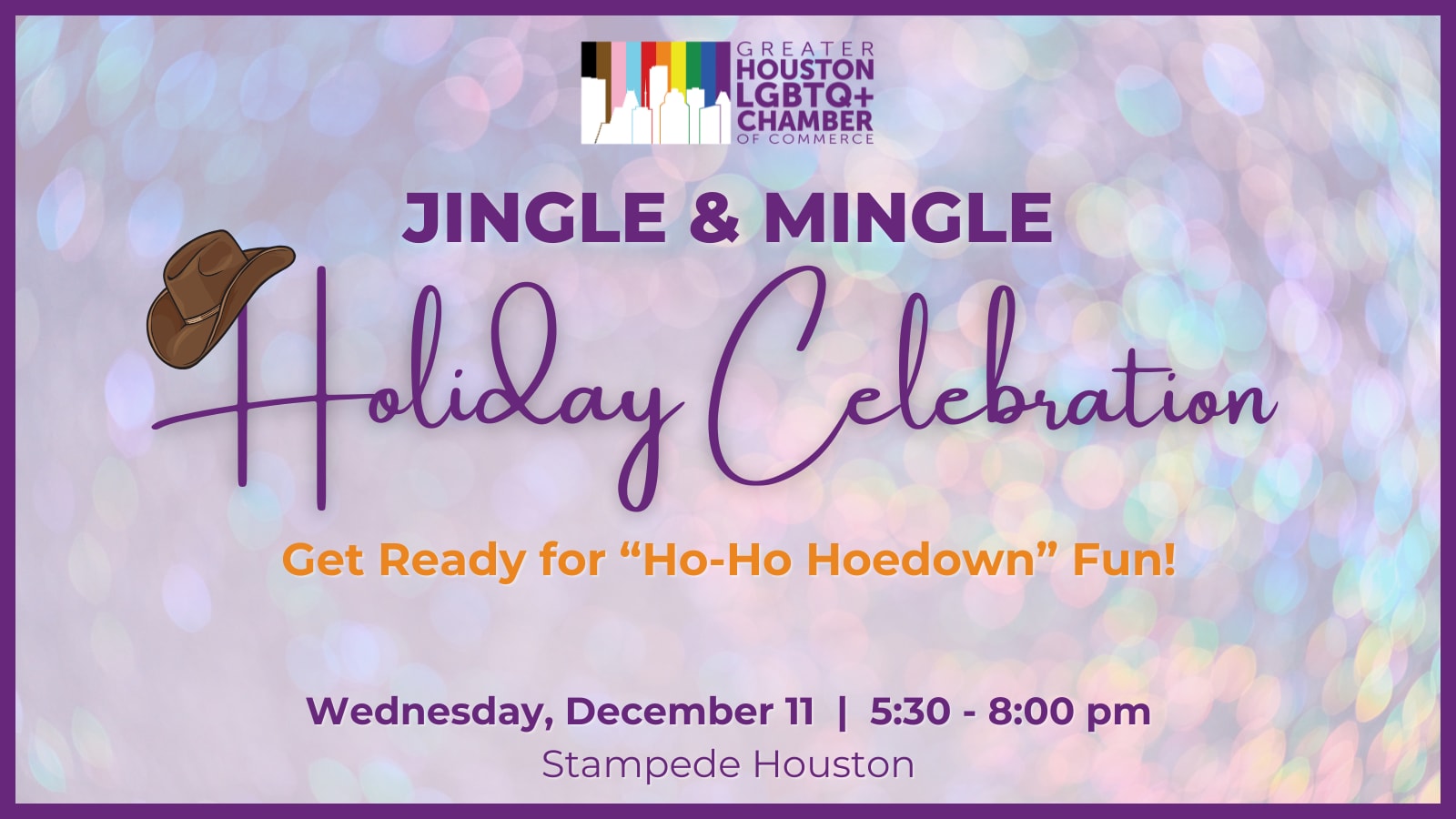 Howdy! Join us for the Chamber Holiday Celebration. This event is always one of our largest events of the year! Are you ready for some Ho-Ho Hoedown fun? This year, we'll be celebrating at Chamber Member, Stampede Houston. We have a fun evening planned included activations, silent auction and the Chamber Rainbow Market plus awesome networking and being with community. Register today to reserve your spot!