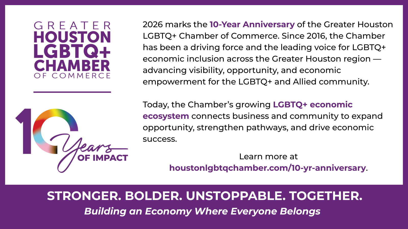 By registering and/or attending a Greater Houston LGBTQ+ Chamber of Commerce program or event, you agree to Chamber's Terms of Use & Policies.